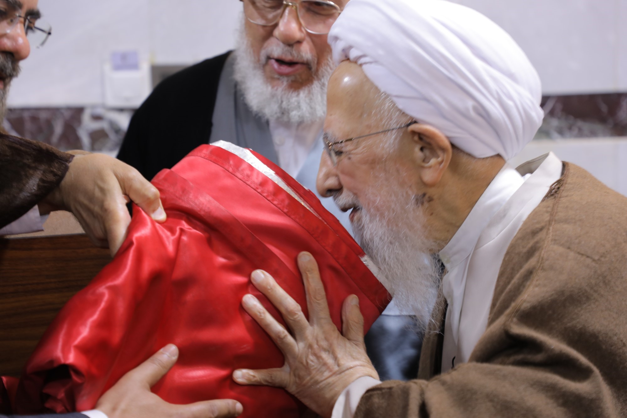 در جریان این دیدارها، پرچم متبرک گنبد مطهر حضرت سیدالشهداء علیهالسلام و پرچم گنبد مطهر حضرت ابوالفضل العباس علیهالسلام به محضر حضرت آیتالله العظمی جوادی آملی اهدا شد.